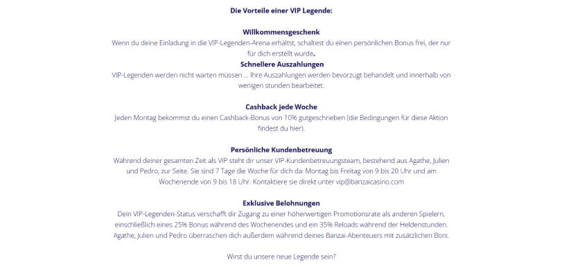 Banzai Casino VIP Legenden