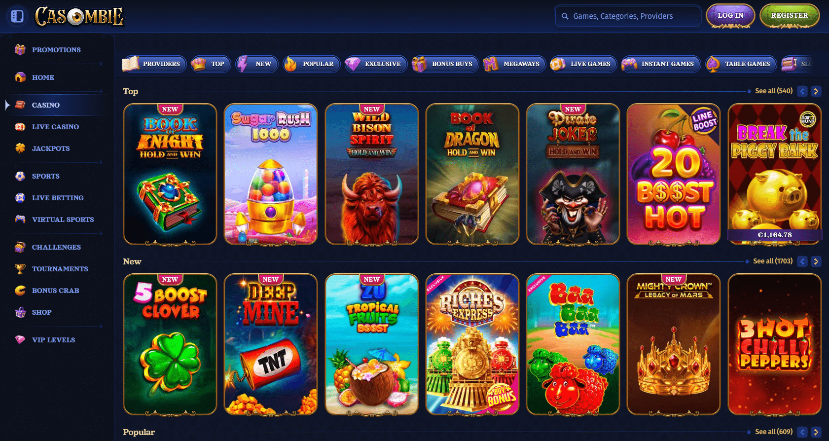 Casombie Casino bietet eine beeindruckende Auswahl von über 4.000 Spielen in verschiedenen Kategorien und sorgt damit für ein dynamisches und abwechslungsreiches Spielerlebnis. Hier ist ein Überblick über die Hauptspielkategorien und Highlights aus der Sammlung.
